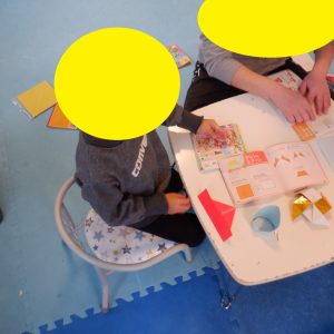 ぴーすさんは午前中に折り紙で作りたい作品を手順書を見て職員と決めながら、協力しながら頑張って折りました![]()
