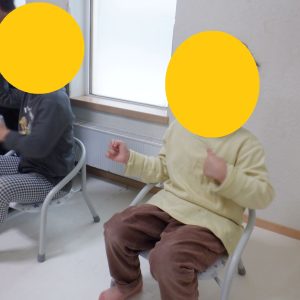 ぴーすは手遊びの後、椅子取りゲーム、