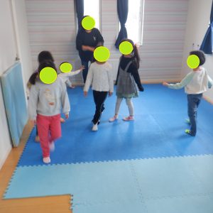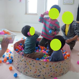 午前は、ボールプールチームとゲームチーム(ストップゲーム&ハンカチ落とし)に分かれて活動しています![]()