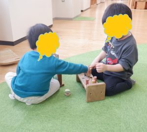 木のおもちゃコーナーやおままごとコーナーで好きな遊びを見つけ、お友だちと一緒に仲良く遊んできました![]()