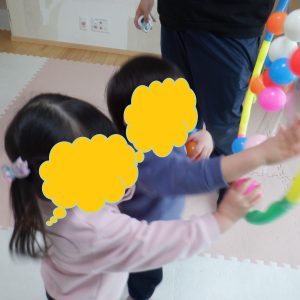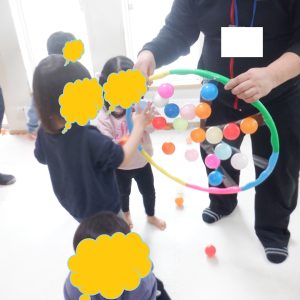Daysさんはフープに付けたテープにたくさんボールをつけようと一生懸命投げたり、そばまで行ってペタっと付けてみたり楽しく取り組めています!!