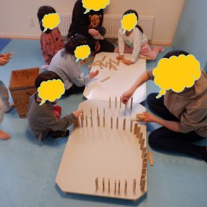 ぴーすさんはカプラ積みとドミノ倒しを行い、時間内にどれだけ高く積めるか集中して頑張っていましたよ