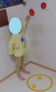 ③壁に貼られた自分の選んだ色の所に行ってゴールというゲームです。