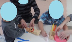 午後は、封筒やティッシュを使用して「イカさんロケット」を作りました🦑