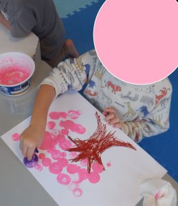 水風船にピンクの絵の具をつけて桜🌸の花を