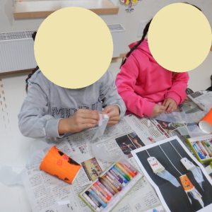 2025.10.28 🎃ハロウィン工作の日👻 みなさんこんにちは🐥今日は雪も降り、冷える一日でしたね❄本日のDays・ぴーすです。午前中は あいぽーと に行ってきました🎶本日のメイン活動は 工作✂️👻‼️紙皿を使ったカボチャや、コウモリカボチャのオーナメントなどを、ハロウィンに向けて製作しました。事業所内は児童の製作物で装飾されていますよ🤗その後はおもちゃ遊びと、Daysさんは ねんどぴーすさんは 紙コップ積み大会をそれぞれ行っていますよ🤗‼️ 本日も一日お疲れさまでした🎈明日もよろしくお願いいたします。除菌消毒作業行っています « 前の記事へ