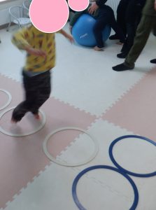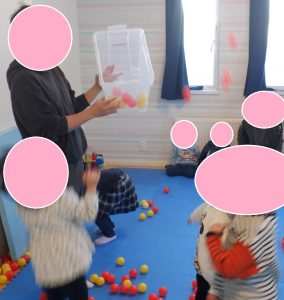 たくさんのカラーボールを頑張って箱に入れていましたよ![]()