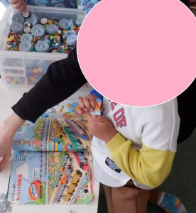 色々な玩具を見て、目を輝かせていましたよ![]()