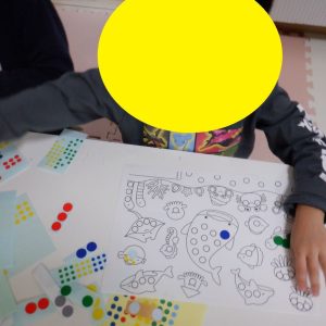 ぴーすさんは、ボール的当てとシール貼りと塗り絵を行いました🌟